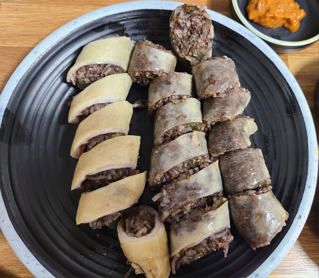 막창순대는 국밥을 시킬 때 빈번하게 시키는 대표메뉴 중 하나입니다. 막창 식감은 쫄깃하고 씹는 맛이 있었으나 역시 돼지 특유 냄새가 살짝 느껴졌습니다. 다른 가게의 막창순대와 비교할 때 특별히 우위에 있다거나 하는 것은 못 느꼈고, 오히려 타지역의 막창순대 강자들이 생각 나기도 했습니다.