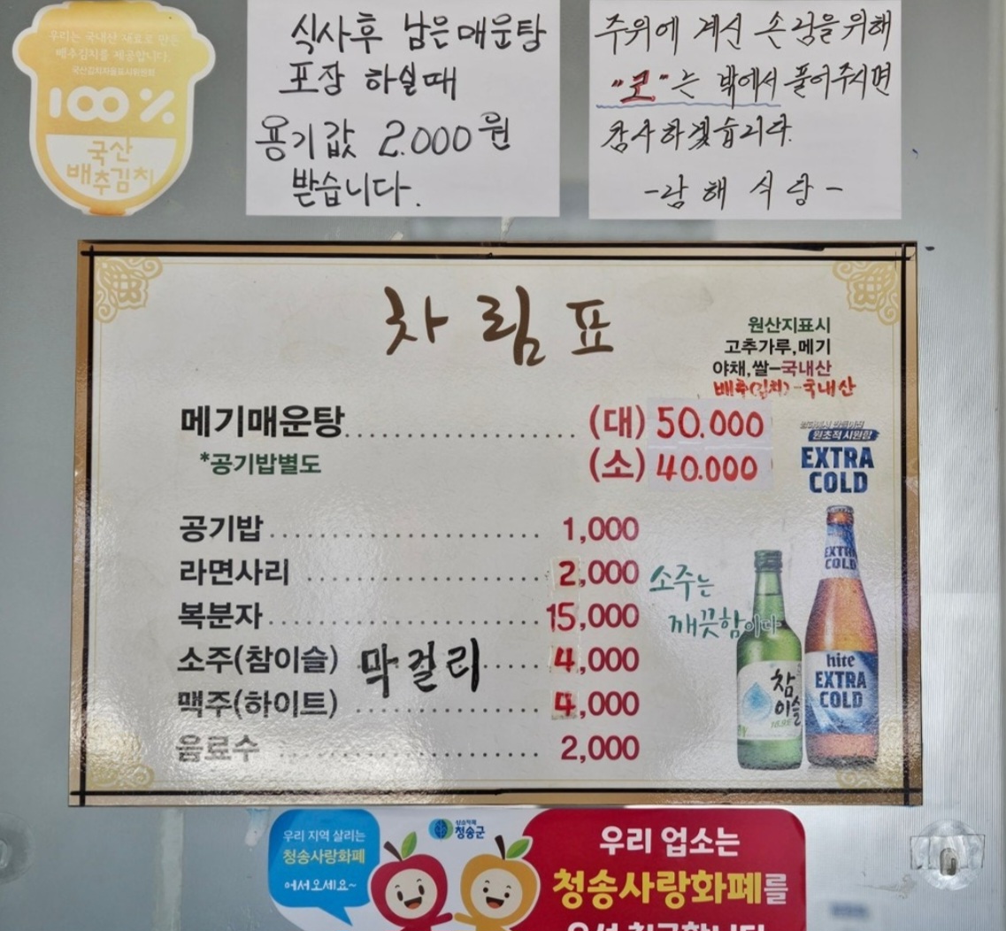 ○[결론] 청송에 여행을 가서 해장이 필요하거나 얼큰한 매운탕이 생각난다면 재방 의사 있음, 별 5개 중 ★★
