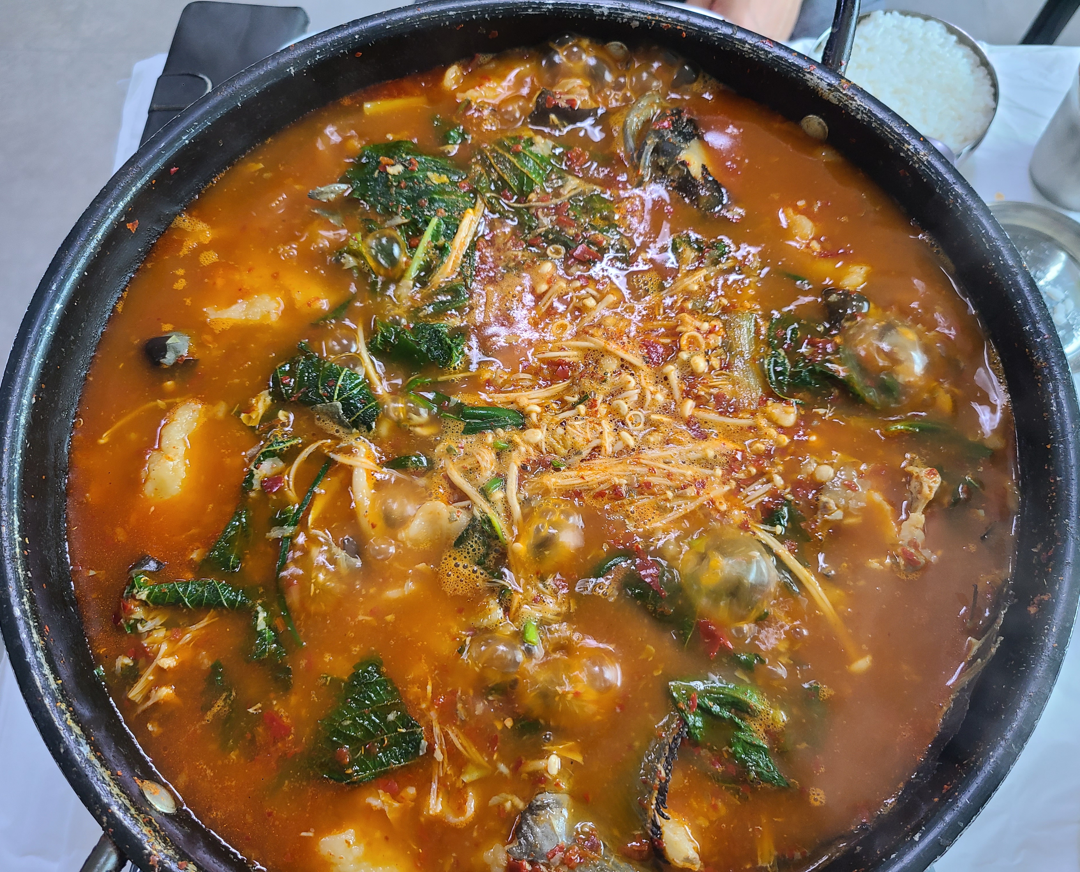 중요한 것은 국물맛인데 지나치게 맵지도 않고 얼큰한 것이 해장하기 좋았습니다. 다만, 개인적 입맛 편차에 따라 고추장 맛이 지나치게 강하거나 무난하게 느껴질 수도 있을 것 같습니다.