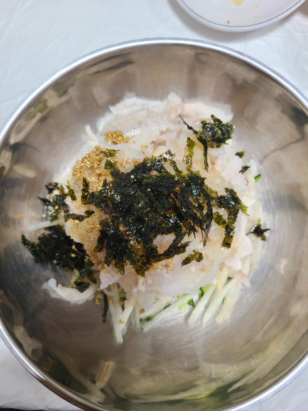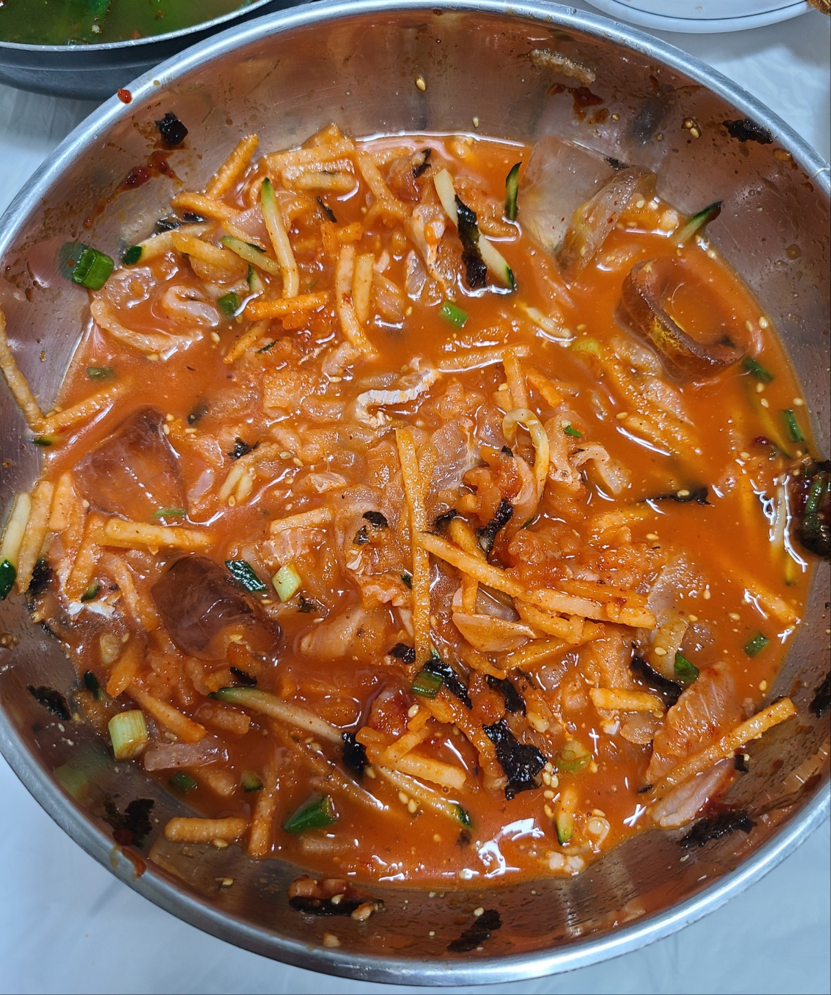 참가자미 물회 맛집인 태화횟집은 고추장을 비벼 개인 기호에 맞게 물을 넣어서 간을 맞추어 가는 전통방식 물회라고 할 수 있습니다.