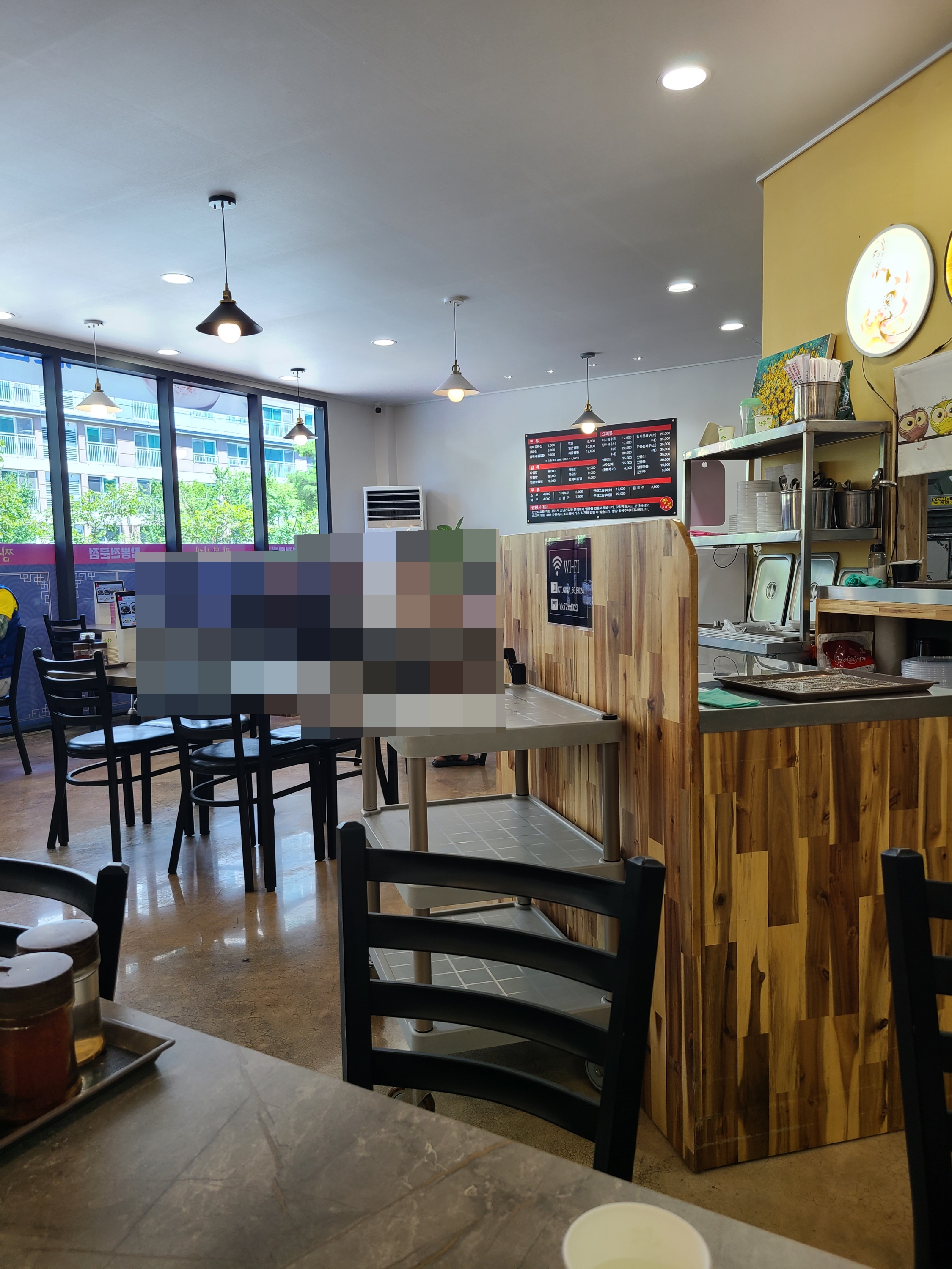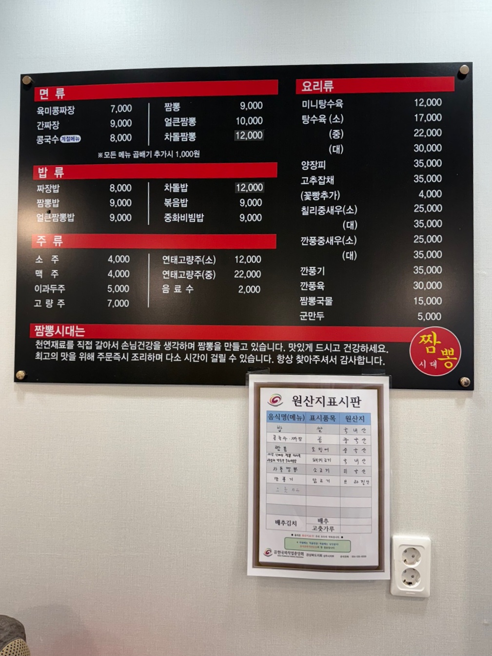 - 내부 테이블이 여러개이며, "한 그릇의 짬뽕도 명품처럼 만들어 드립니다" 문구가 인상적입니다.