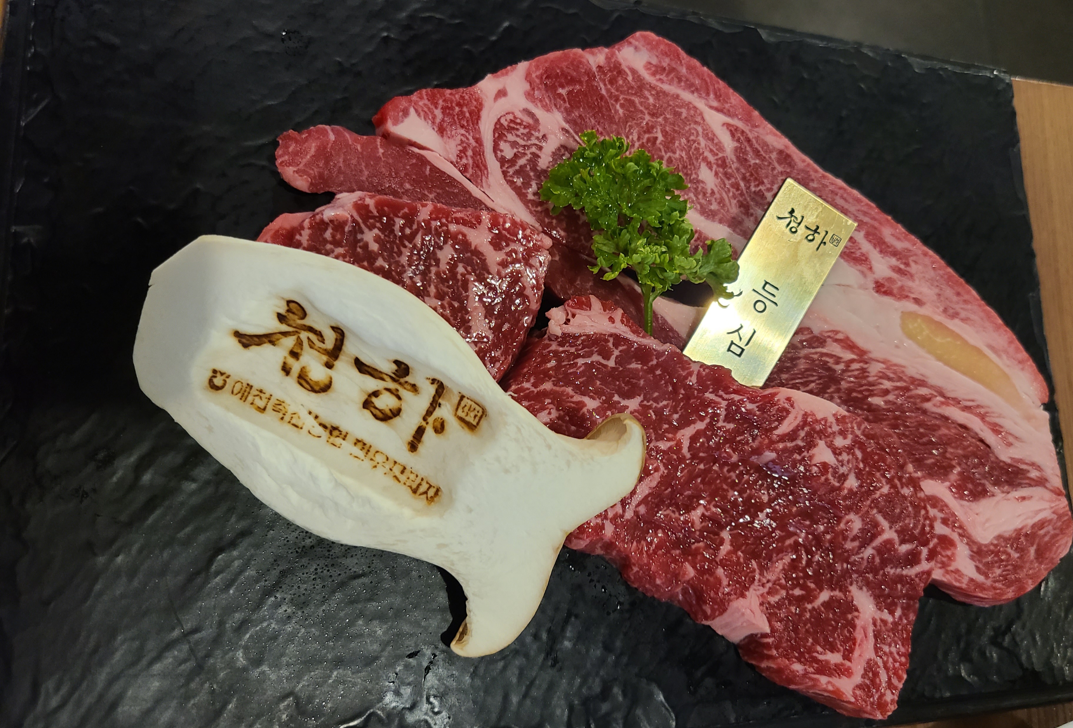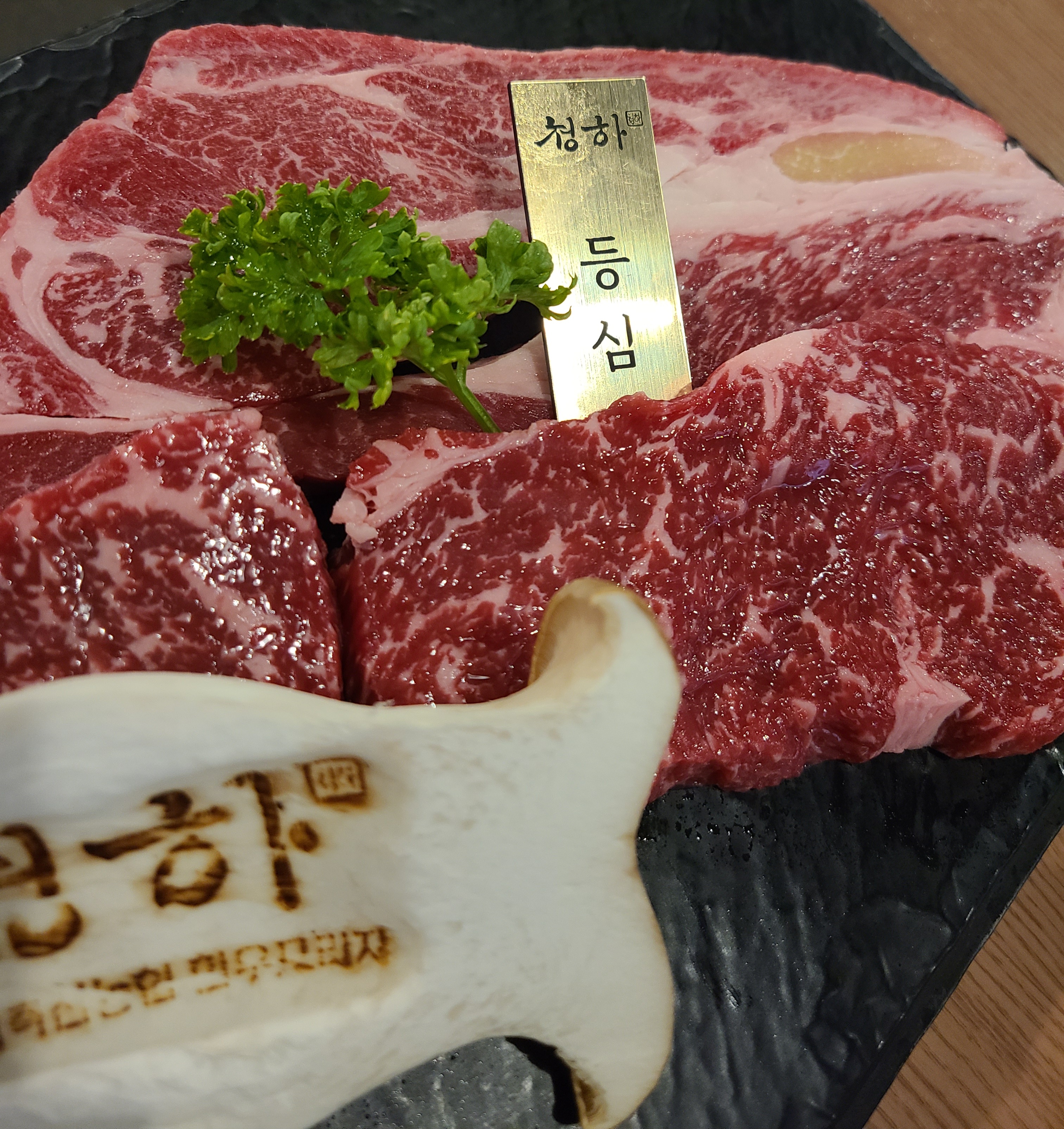 ○[주문] 청하생등심특선(1인 21,000원), 한우비빔냉면(9,000원), 육회(19,000원)