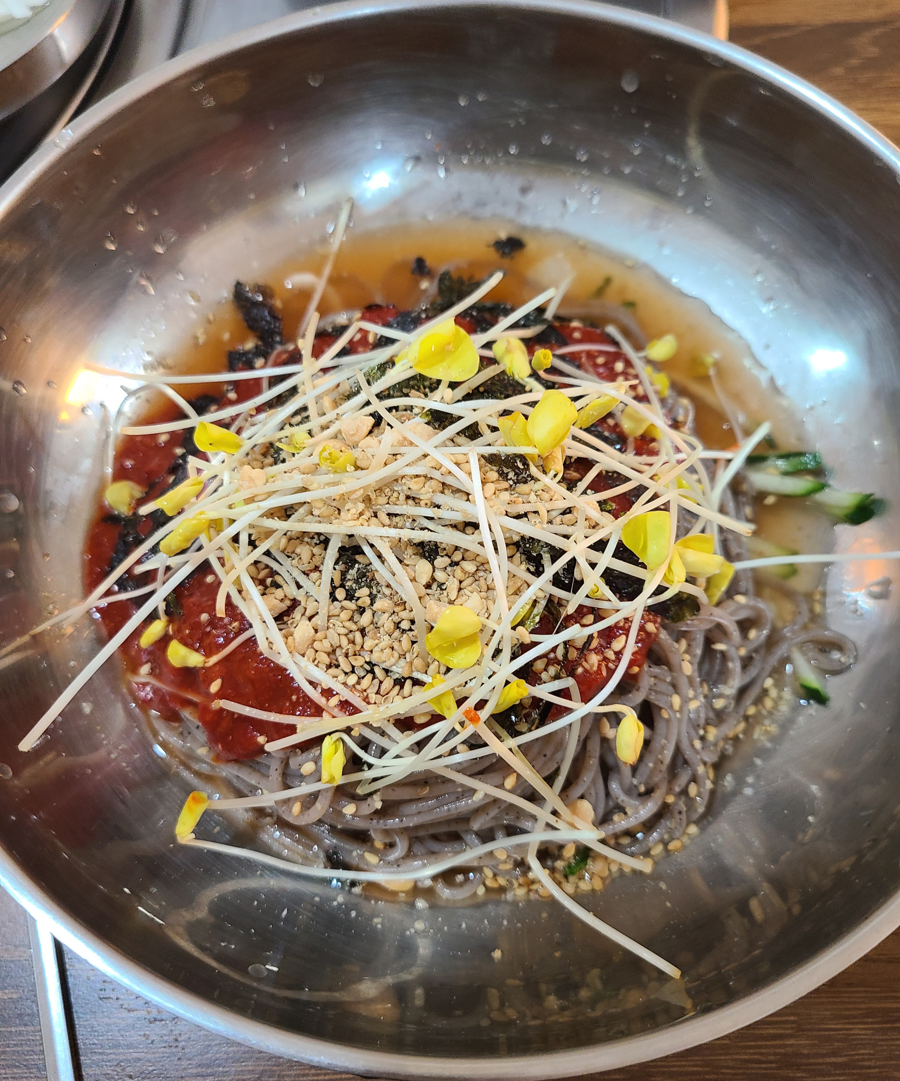- 비빔막국수는 대체적으로 고소한 맛이며, 다소 텁텁함을 느꼈기에, 다음에 오면 비빔보다는 물 막국수를 주문할 것 같습니다.